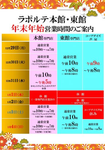 ラポルテ本館・ラポルテ東館 年末年始の営業のご案内