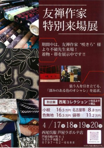 【本館1F】西尾呉服 友禅作家 特別来場展 2026/4/17(金)~4/20(月)
