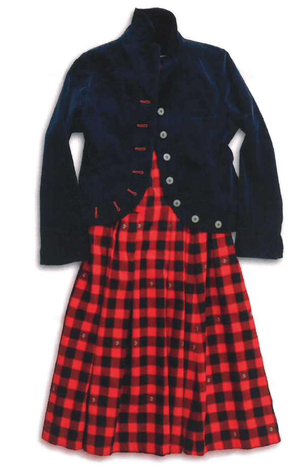 「Lover's Birthday」。赤黒チェックの中にかわいい葉っぱのインターシャのオリジナル生地でワンピースを作りました。