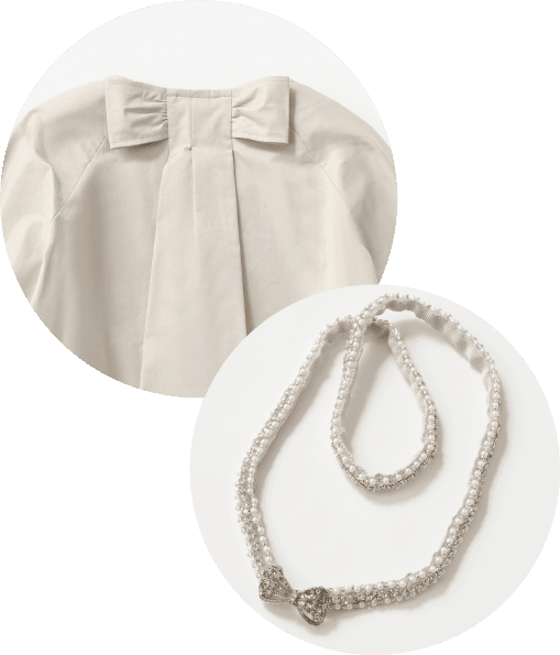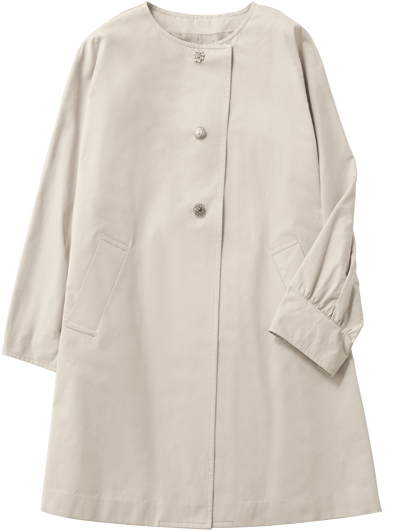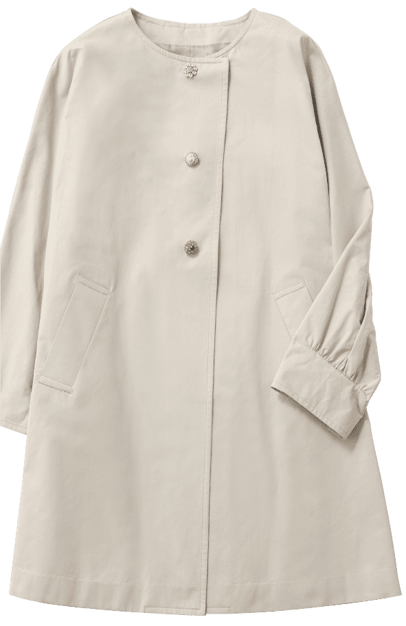 〈ルール ロジェット〉のヴィンテージライクなコートはオケージョンから通勤まで活躍。上品で美しいビジューベルトは職人による手仕事です。
