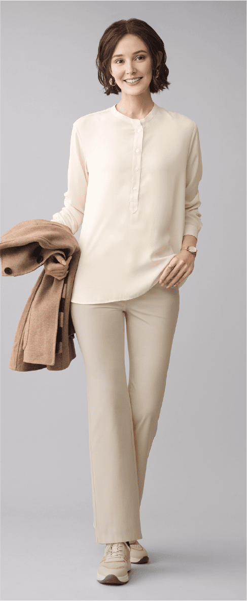 スニーカーでも美脚になれるパンツが登場!股下のパーツ構成などデザインに工夫を凝らし、すらりと広がるフレアシルエットを実現しました。