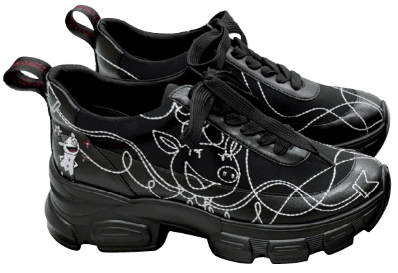 ぶたサンSMILEがかわいいアルベロベロのスニーカー。安定感のある軽いタッチで楽しくウォーキング。