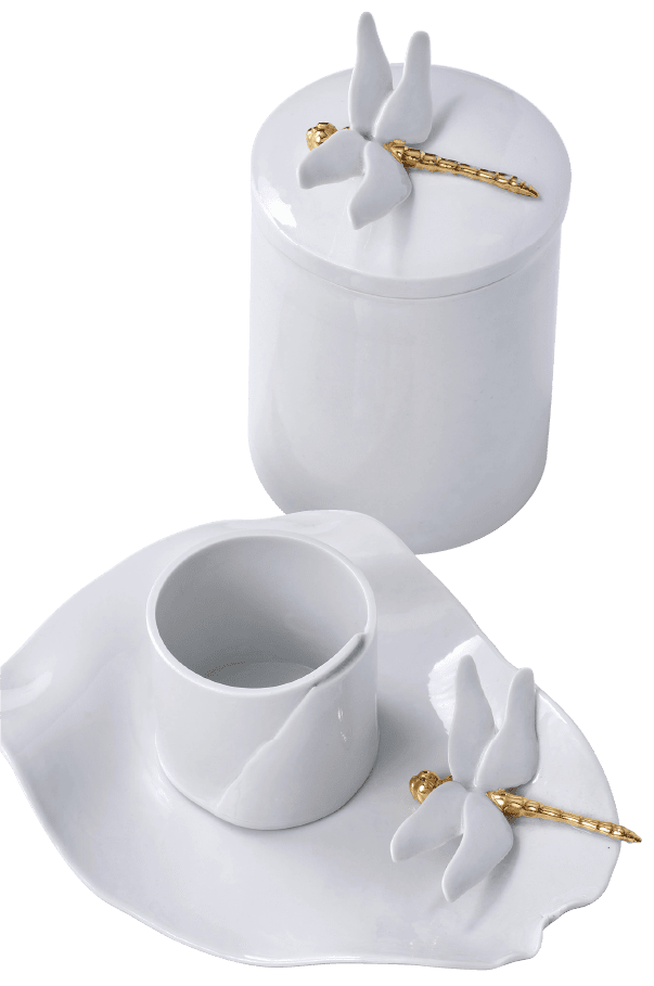 フランス現地で買い付けたトンボの陶器はフランス人クリエイターの作品。ゴールドの彩色が美しく、トンボの薄い羽根に職人の技が光ります。