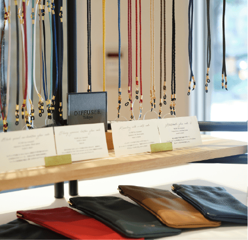 アイウェアアクセサリーの専門ブランド「DIFFUSER」のお洒落なグラスコード、メガネケースが入荷。牛革やシルク素材を使用した逸品を是非お試しください。大切な方へのギフトにもおすすめです。