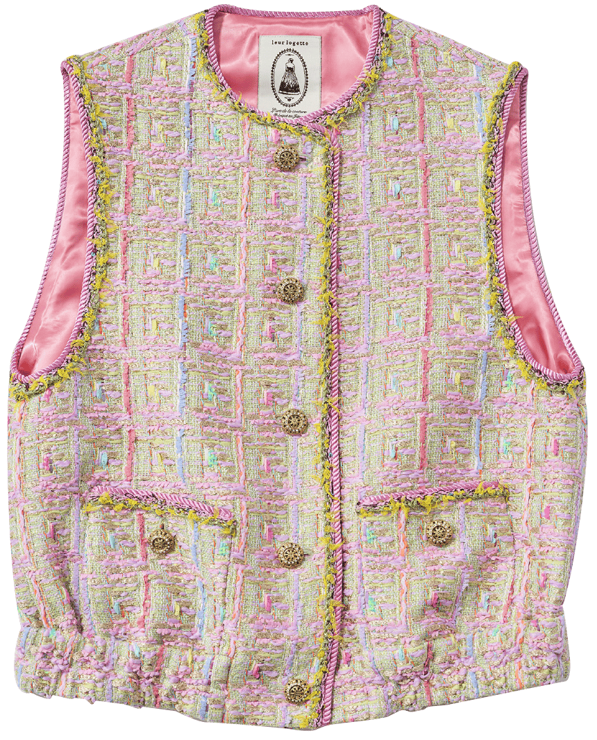 シャネルツイードで知られる仏・マリアケント社のツイードを使った別注ベスト。アンティークボタンから型を取ったボタンなど細かなディテールが光ります。