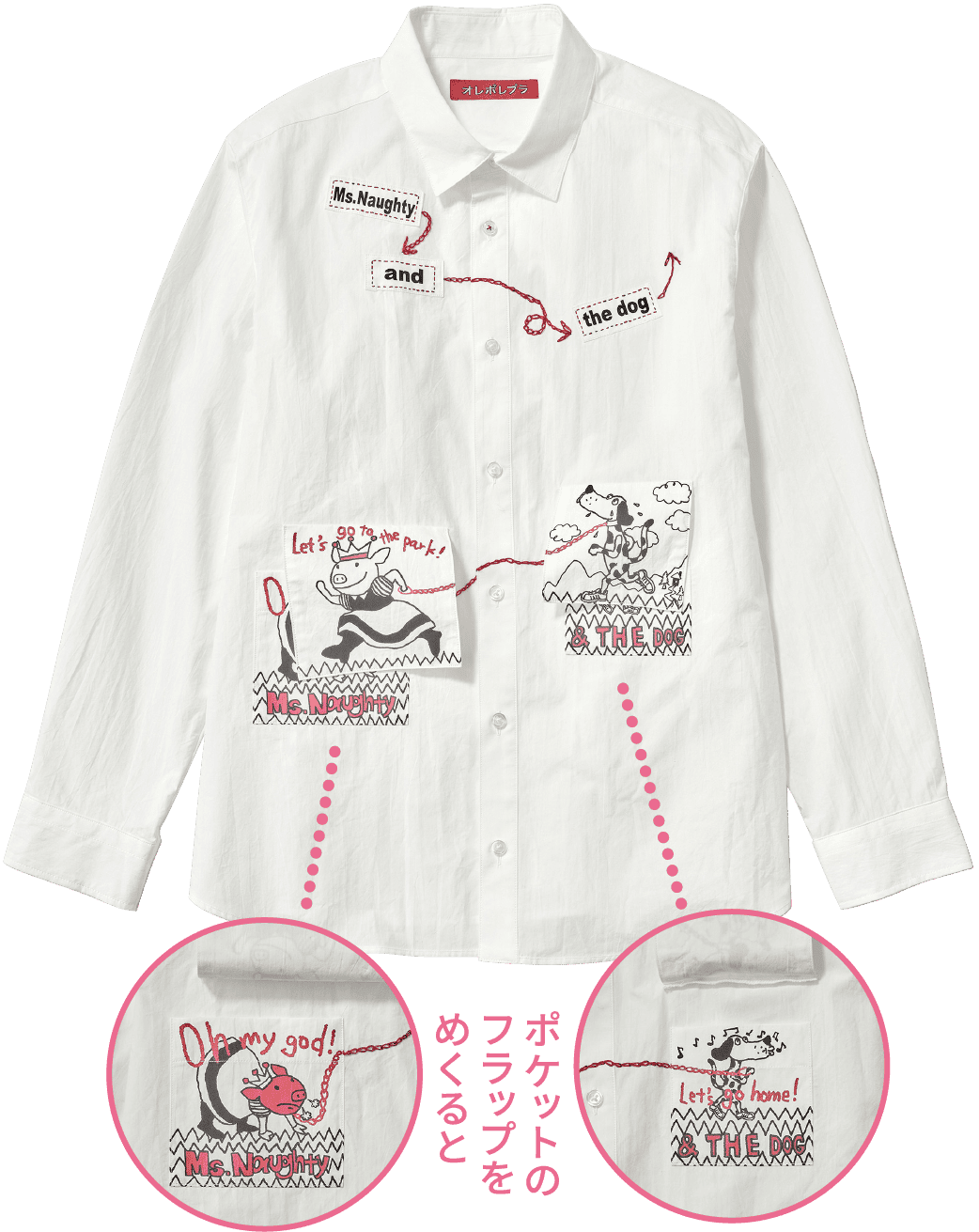 シンプルなホワイトシャツに、いたずらっ子と愛犬のお出かけストーリーを描きました。レディースのMとL(メンズ)のサイズ展開です。