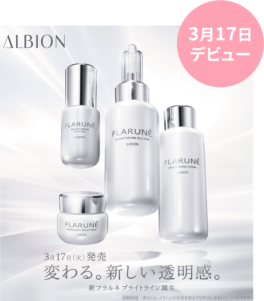 新生「フラルネブライトライン」が今春デビュー。透明感のあるミルク乳液で速攻なめらか。キメを整え、毛穴の目立たない明るい肌へ。サンプルにてお試しください。