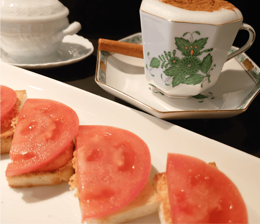 ※写真は「とまとカリカリチーズトースト、シナモンカプチーノ」