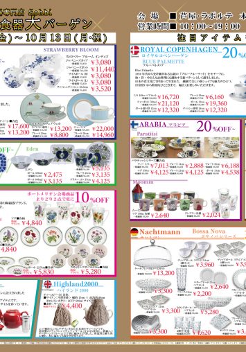【本館1F】ヨーロッパ輸入食器専門店「Sohbi」の売りつくしセール開催!【期間限定】