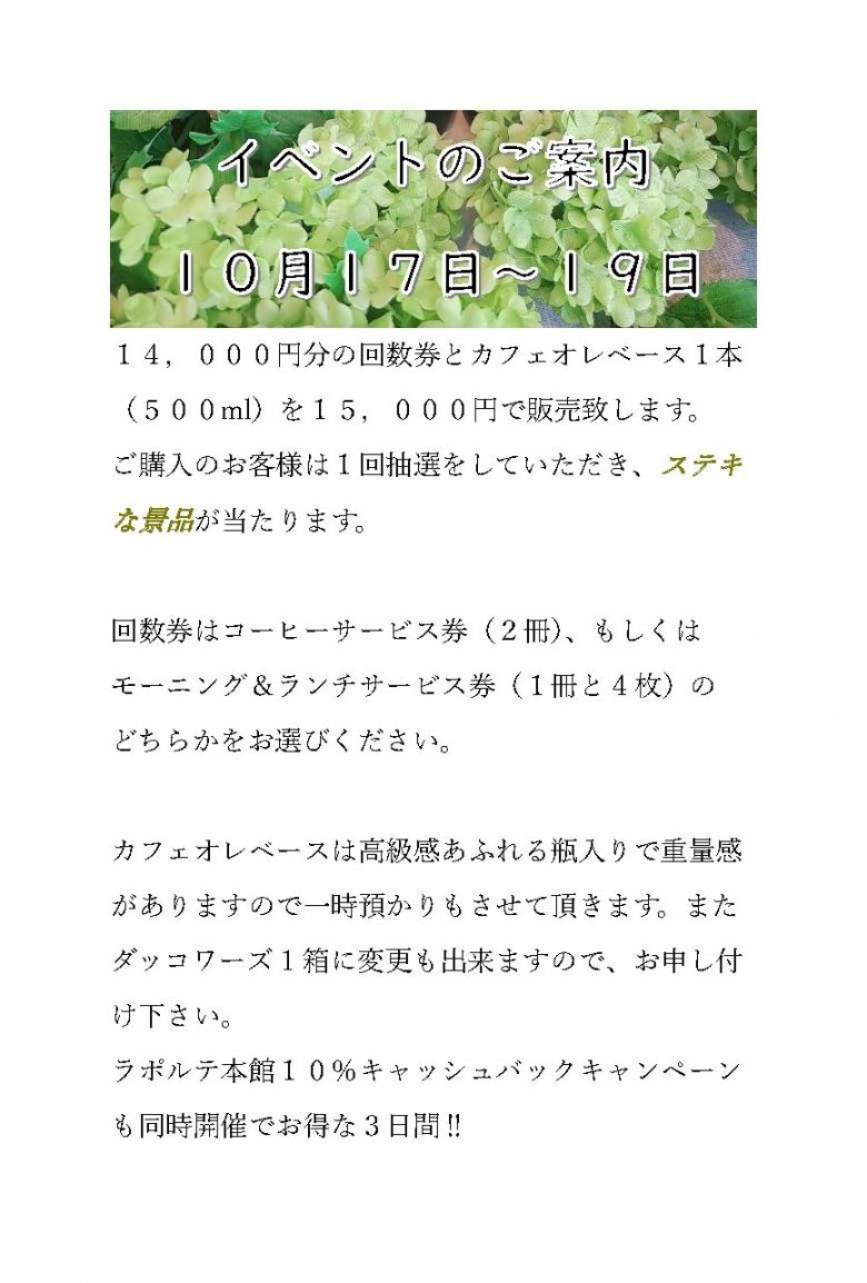10/17(金)~10/19(日)の3日間はぜひ皆様ご来店ください✨