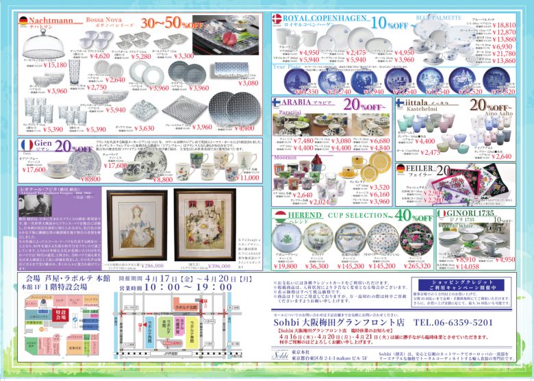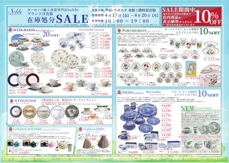 【本館1F】洋食器のShobi(そうび) 4/17~4/20特別催事開催! 期間:2026/4/8~2026/4/20 輸入洋食器の「Shobi(そうび)」さんが ラポルテ本館1Fの特設会場で春の催事を開催! 【期日】2026年4月17日(金)~4月20日(月) 【時間】10:00~19:00 【場所】本館1F 特設会場にて 素敵な洋食器を揃えて皆様をお待ちしております!!